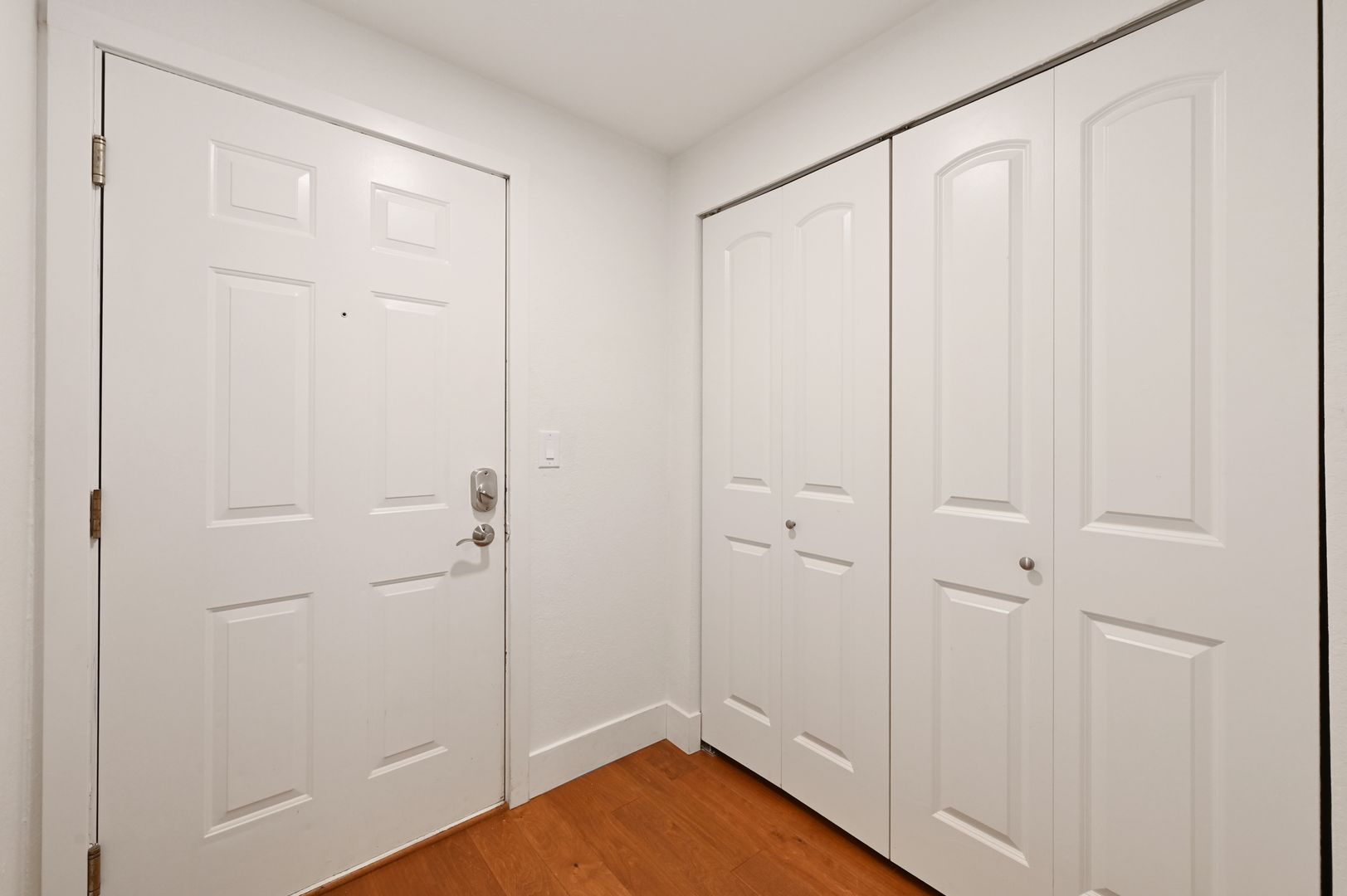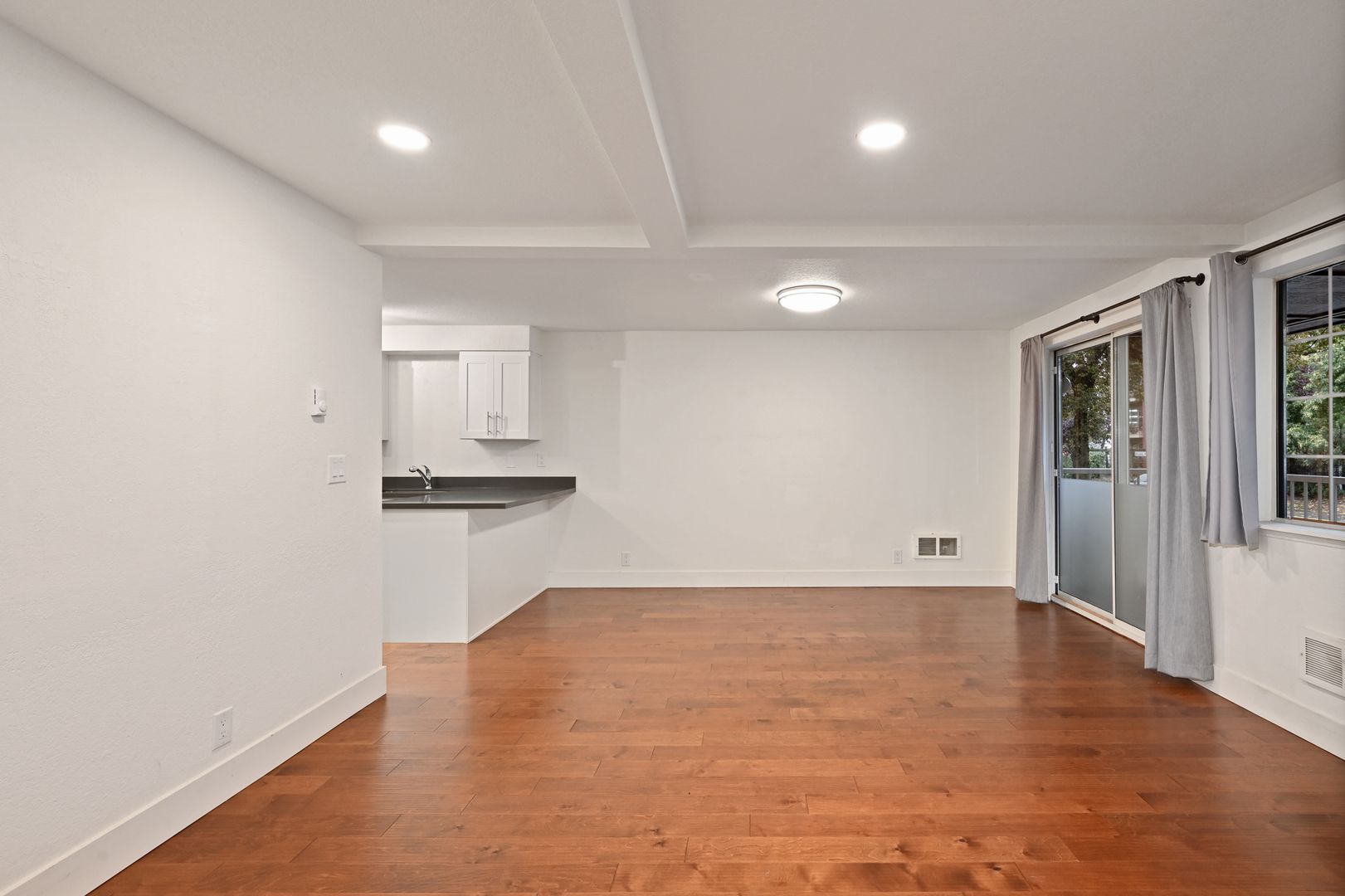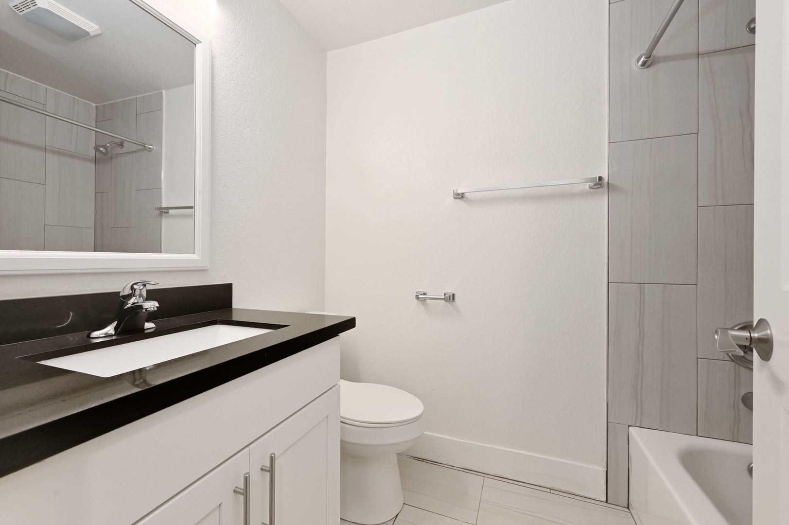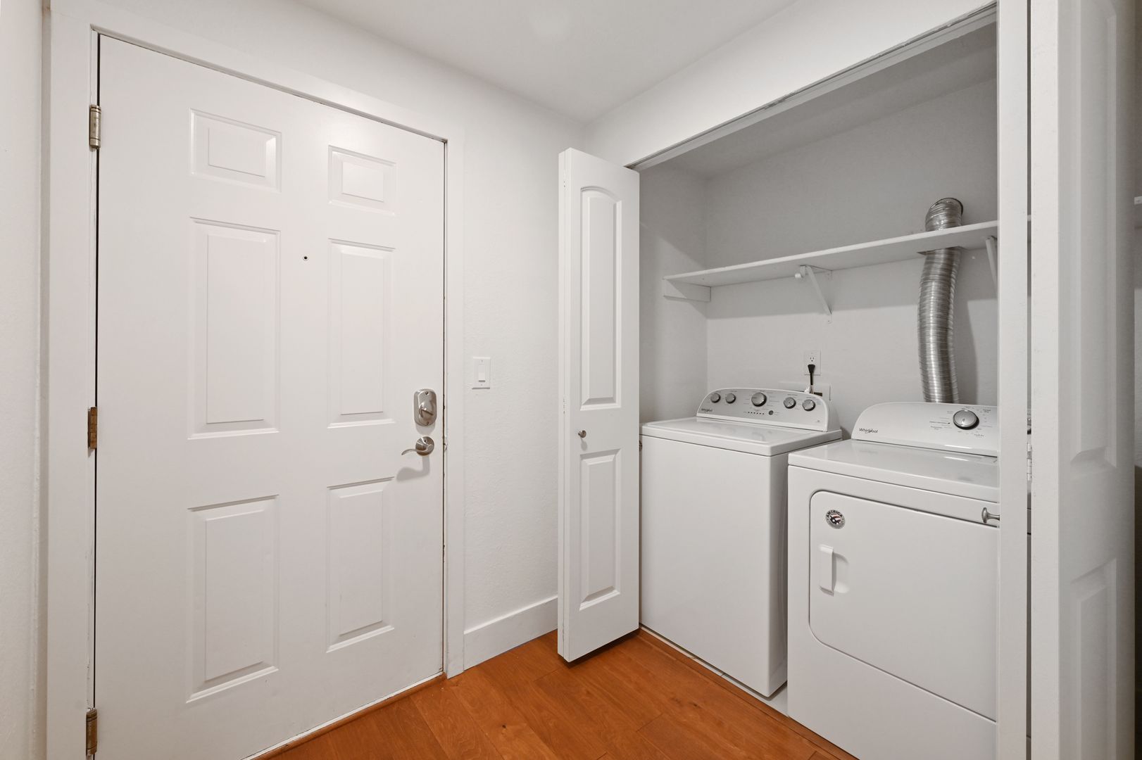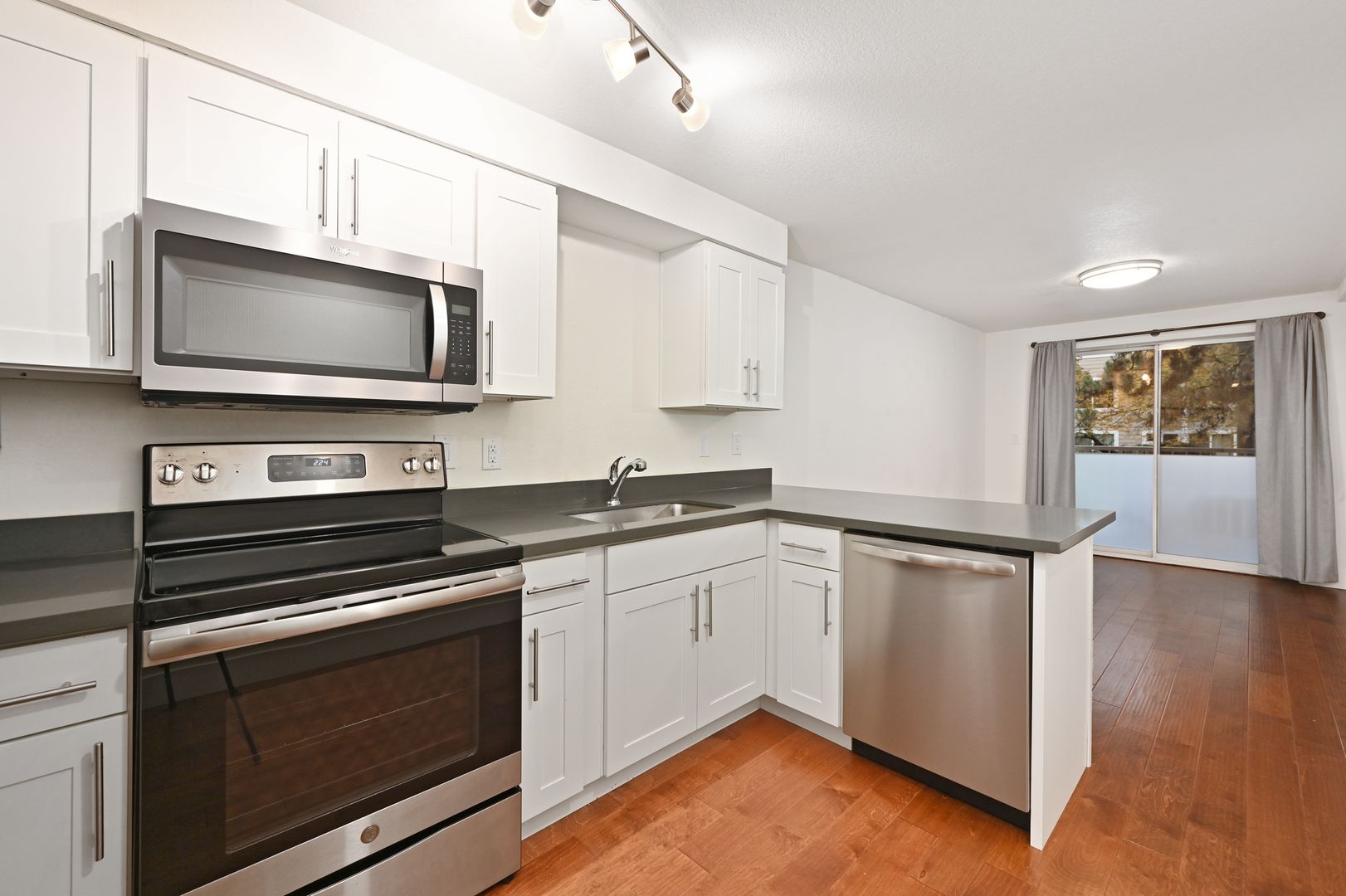This is a recently remodeled 1 Bedroom. Kitchen featuring sleek white cabinets, quartz countertops, and all new stainless-steel appliances. The bedroom comes with a convenient walk-in closet with plenty of storage space. Bathroom with new tile and vanity, along with a full side-by-side washer and dryer. The living room is large and inviting, adorned with beautiful hardwood flooring that leads into a private balcony. Optional parking available in the covered garage.