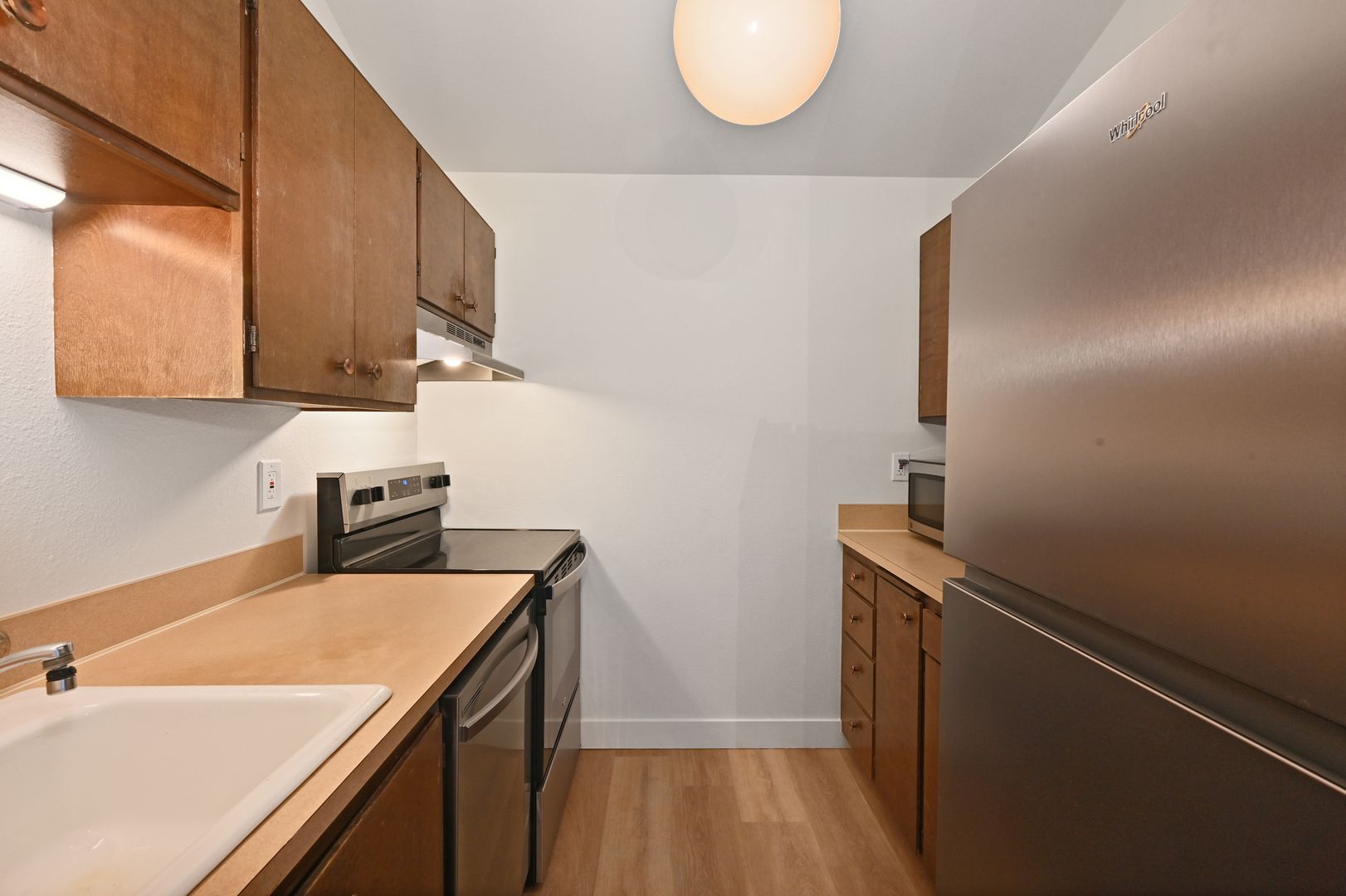 Remodeled 1 Bedroom apartment located north of Fremont. This top-floor unit offers a comfortable and convenient living space in the best part of Seattle. Brand new flooring with high vaulted ceilings. Kitchen features new stainless-steel oven/range, dishwasher, and refrigerator. Bedroom comes with an abundance for closet space for storage. Spacious living room with plenty of natural light. The wide balcony has an incredible view over the neighborhood. The apartment also comes with optional parking space and storage unit.