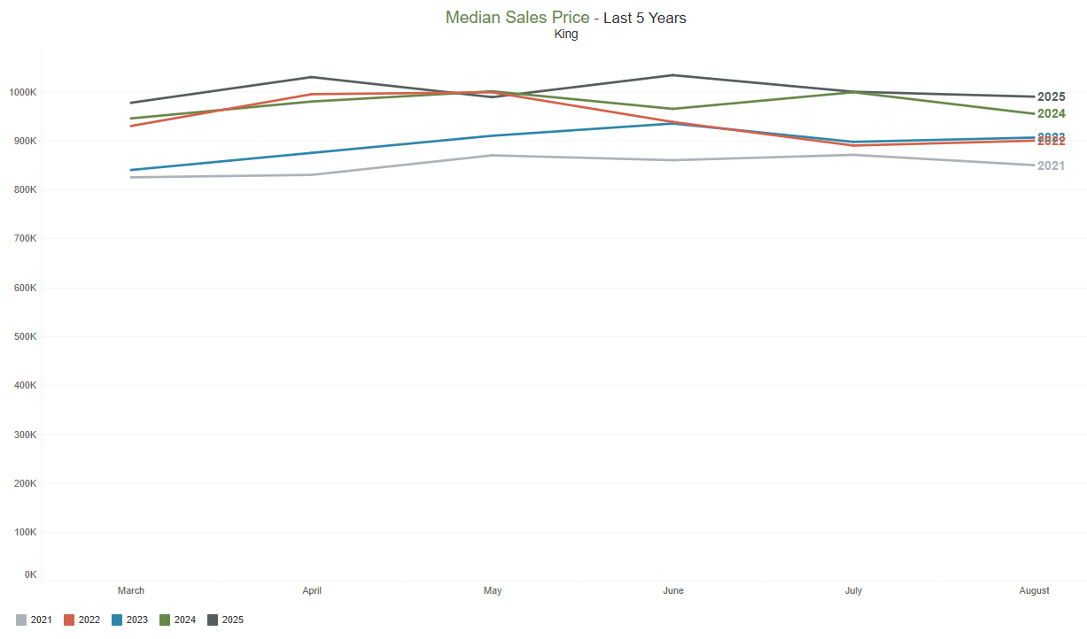 when compared to August 2024 ($645,000). Compared to the previous month, the median price remained unchanged ($650,000 in July 2025).