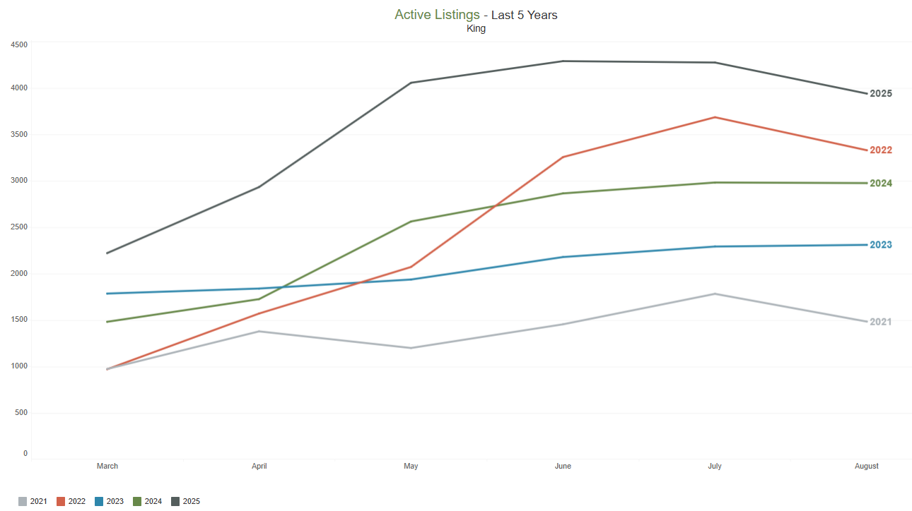 active listings on the market at the end of August 2025, compared to 15,453