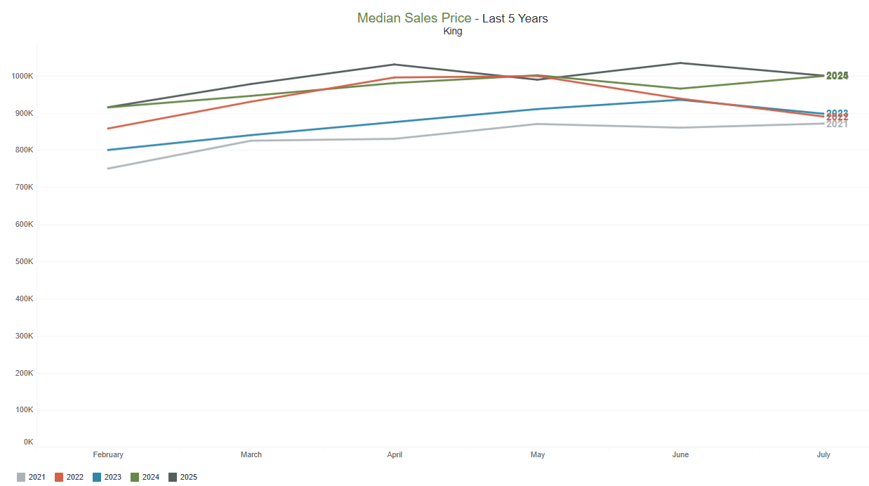 — unchanged from July 2024. Compared to the previous month, the median price declined 2.99%, down from $670,000 in June 2025.