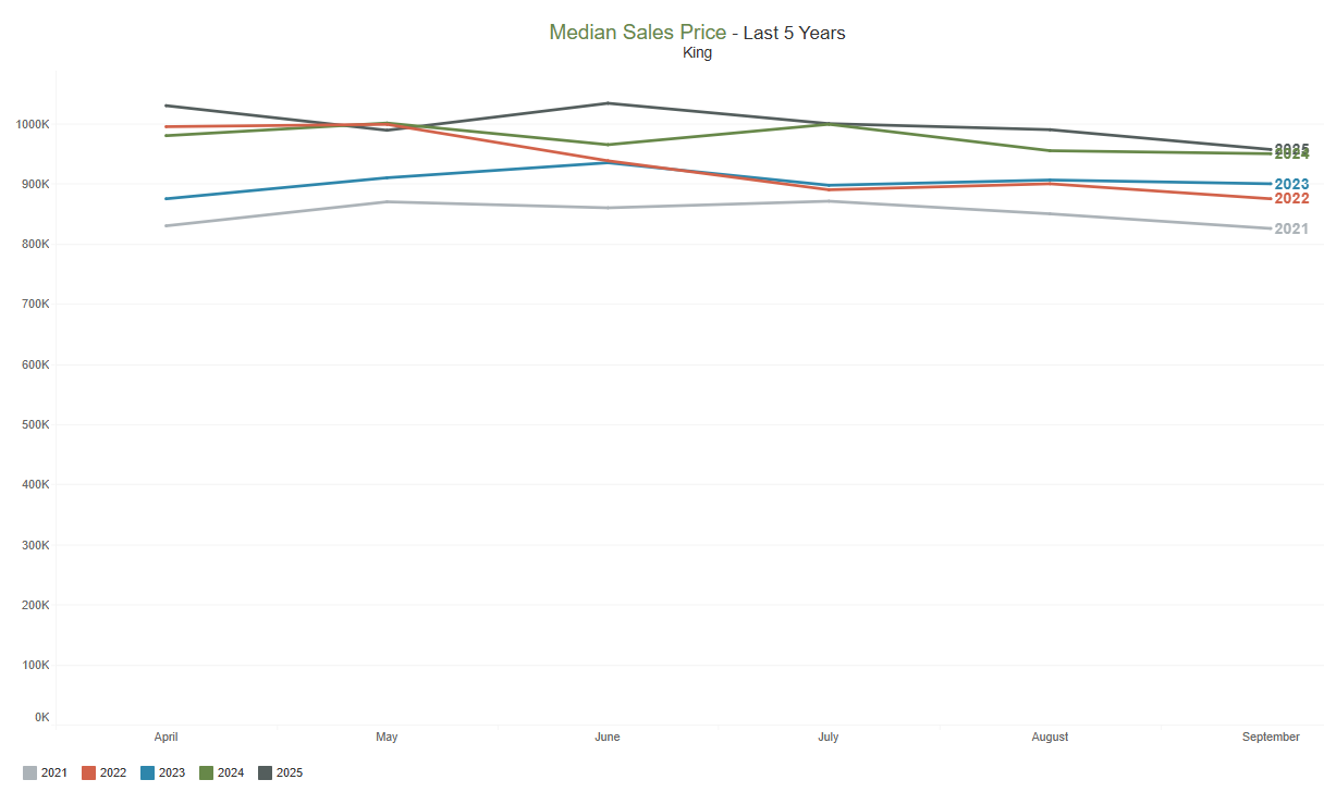 when compared to September 2024 ($635,000). Compared to the previous month, the median price decreased by 3% ($650,000 in August 2025).