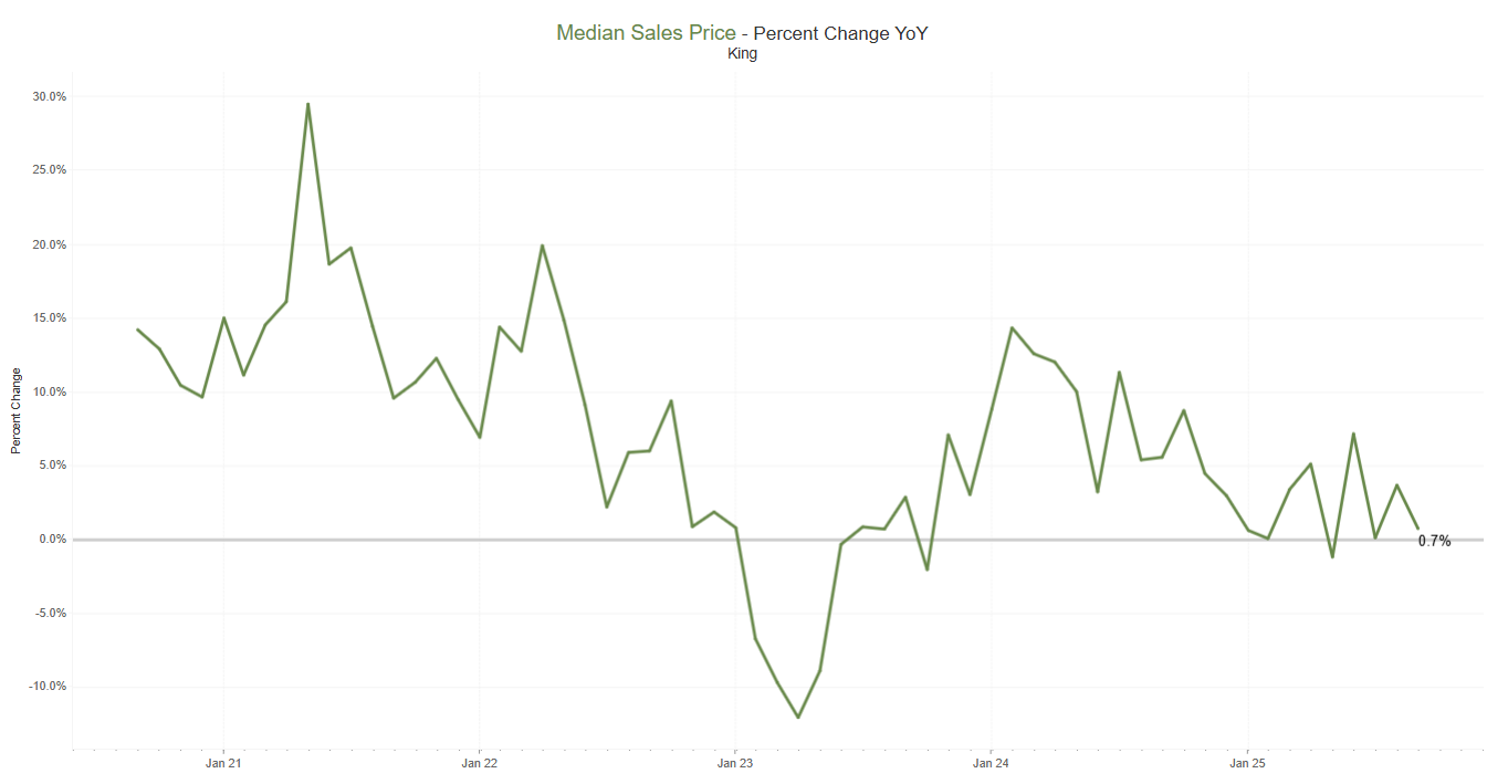 Inventory is climbing, giving buyers more options, while home prices are showing signs of moderation after years of rapid growth. The median sales price in September dipped 0.7% year-over-year, from $635,000 to $630,700, and fell 3% month-over-month from August’s $650,000. Similar month-over-month declines were seen in King, Snohomish, and Pierce counties. Interest rates have declined slightly, but not enough to significantly impact the market.